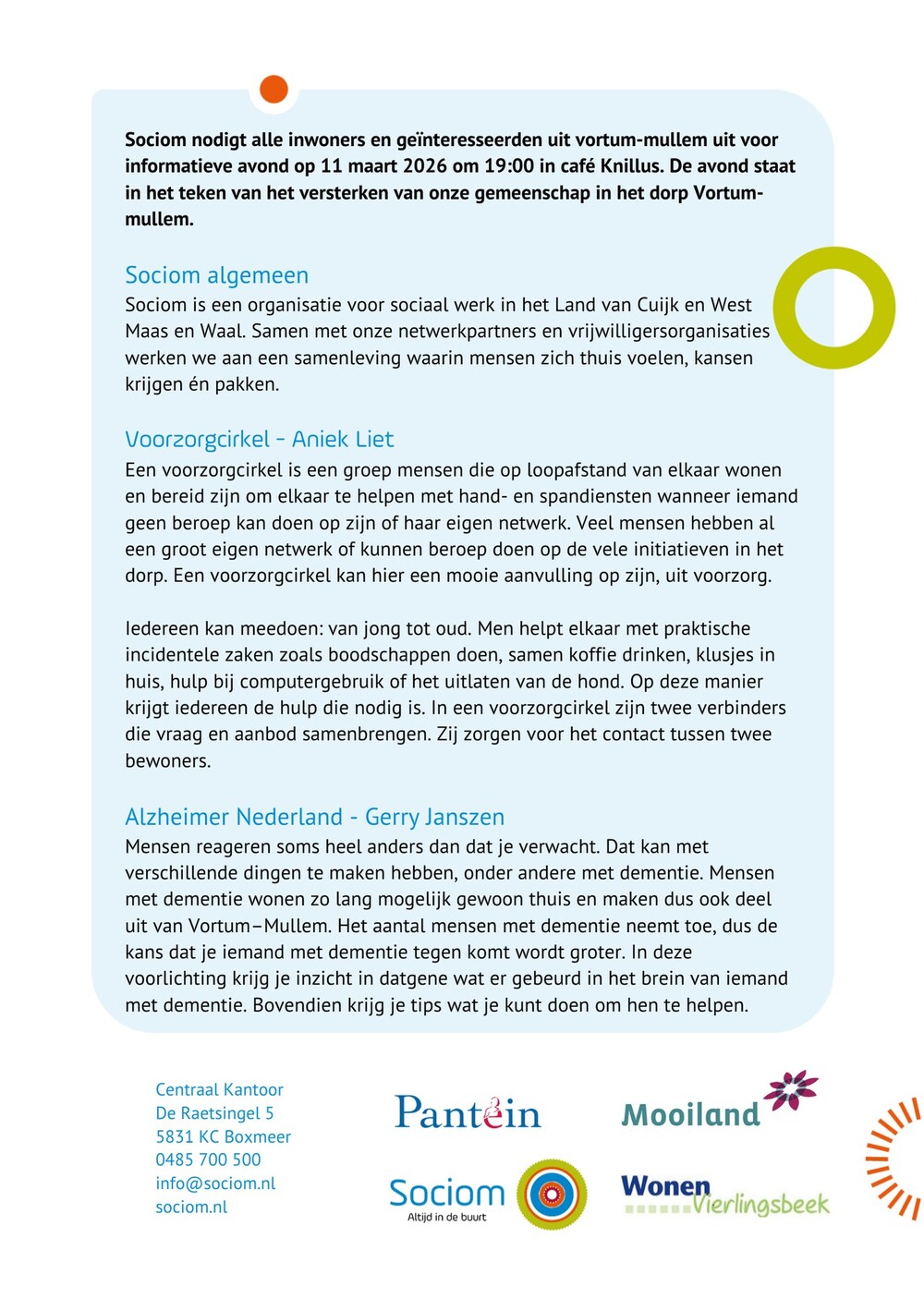 Informatieavond Voorzorgcirkel Sociom